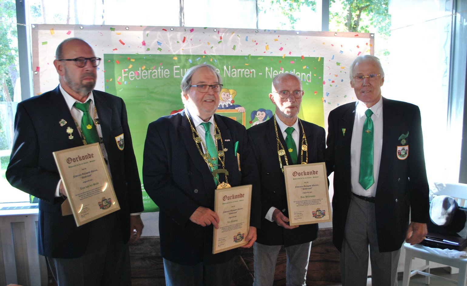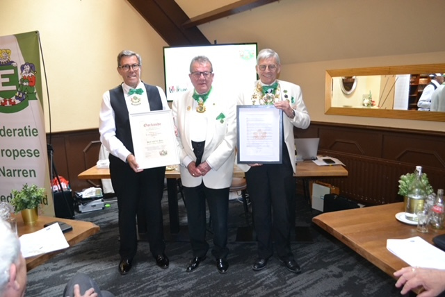 Nadat ik dat bericht had ontvangen heb ik contact opgenomen met de leden van het Dagelijks Bestuur, wat wij nog voor hem konden betekenen voor zijn grote verdienste binnen de Federatie Europese Narren, Nederland, daar zijn wij unaniem overeen gekomen Lex te benoemen tot Ere Lid van F.E.N. Ned.