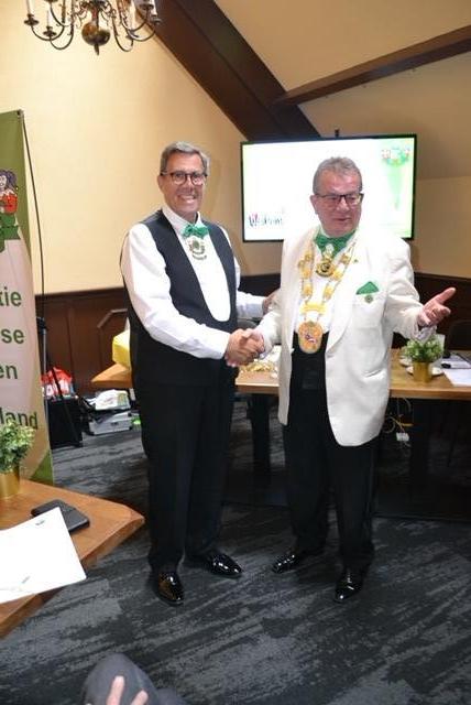 Naast zijn afscheid als vicepresident waarvoor hij werdt geëerd als Ere-lid met een briljanten nar met kroon, werdt Stef ook benoemd tot senator! President Gerald Doene, die middels een mooi dankwoord (tevens ingelijst) Stef bedankte voor zijn jarenlange inzet als bestuurslid, hem ook dankte dat hij zijn kennis nog wilt delen als senator.